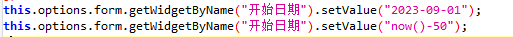 var a = this.options.form.getWidgetByName("开始日期").getValue()
