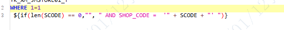 ${if(len(SCODE) ==0,""," AND SHOP_CODE in ('" + SCODE +"')")}